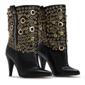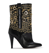 STORM mixes sharp elegance with raw attitude, turning the classic high-heel silhouette into a statement piece. The upper is covered in gold metal eyelets of multiple sizes, creating a disruptive texture that catches the light and commands attention. Designed for women who don’t blend in — they lead.