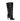 Over-the-knee black leather boots embellished with pearls and multicolor crystals, applied in an irregular pattern to create a refined yet powerful jewel-like effect.