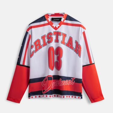 Made from lightweight acetate with the iconic “CRISTIAN 03 Department” print, the Red Edition reinterprets college energy with CR03’s bold attitude.