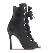 With a bold open-toe silhouette and thick tonal laces, RUSH BLACK OPEN LEATHER redefines sensual power — crafted to dominate any scene with fearless elegance.