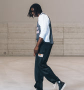 The long sleeve offers versatile layers, track pants offer relaxed sophistication, and mirage sneakers ground the whole with a modern twist.