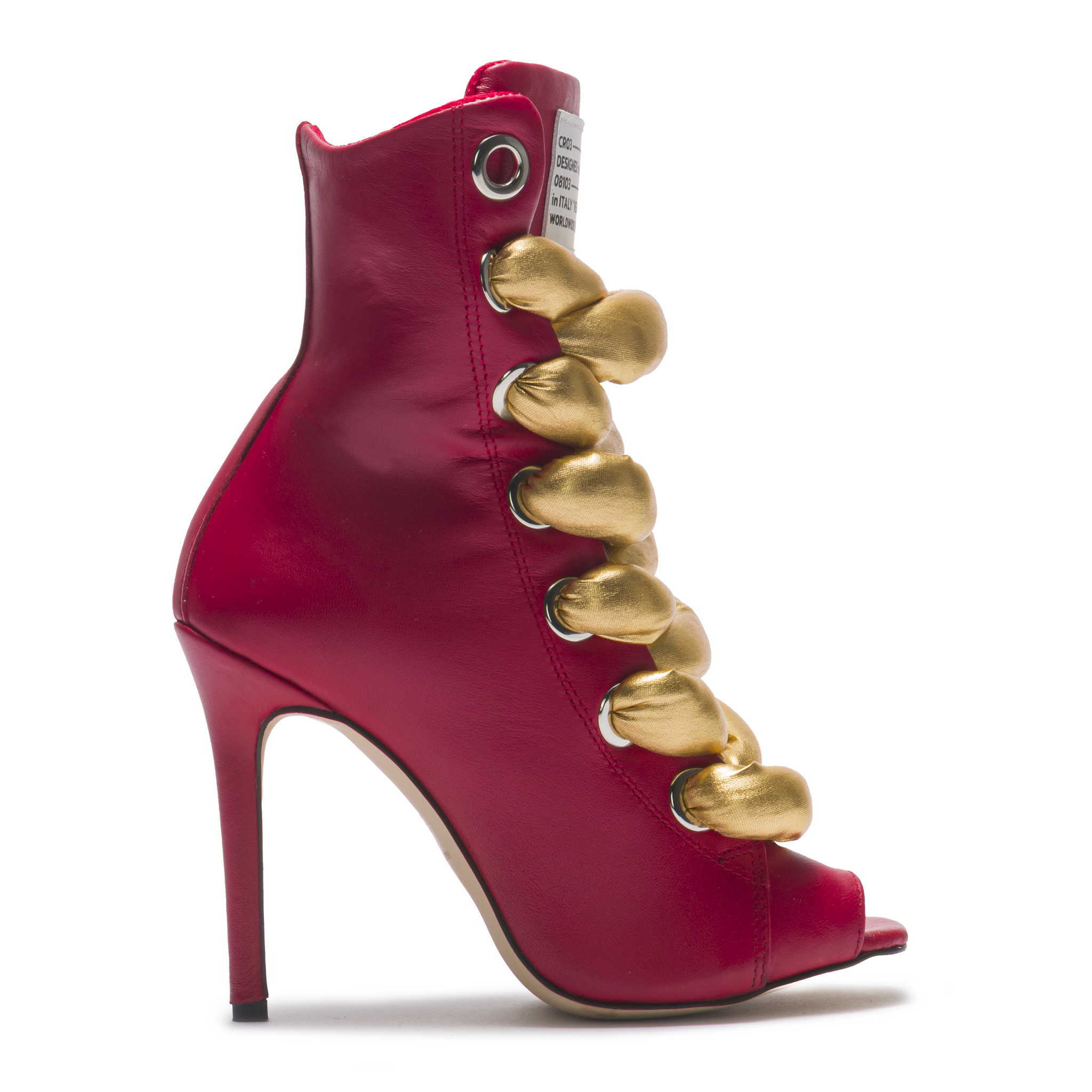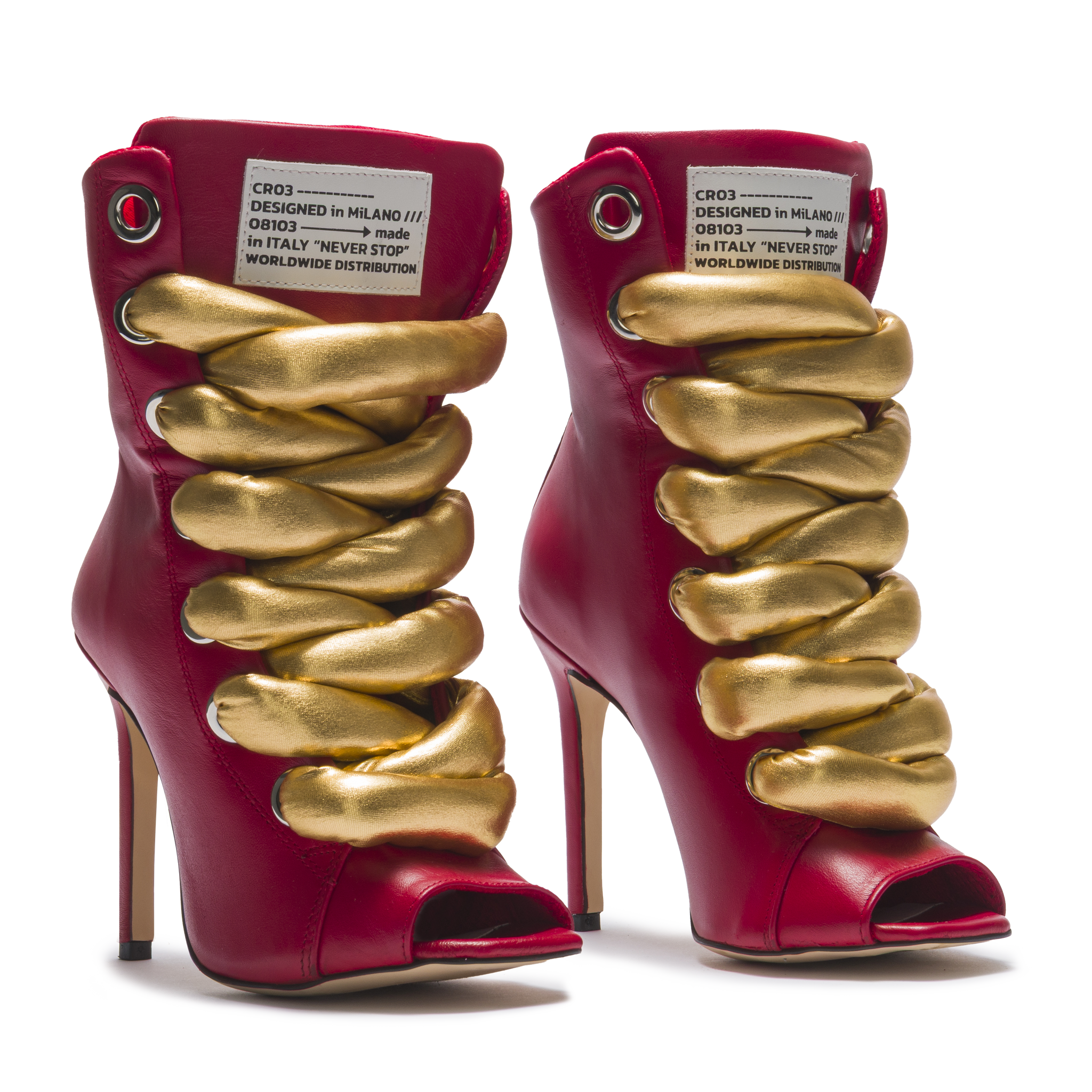 • Tissu en cuir-Bordeaux avec lacets dorés