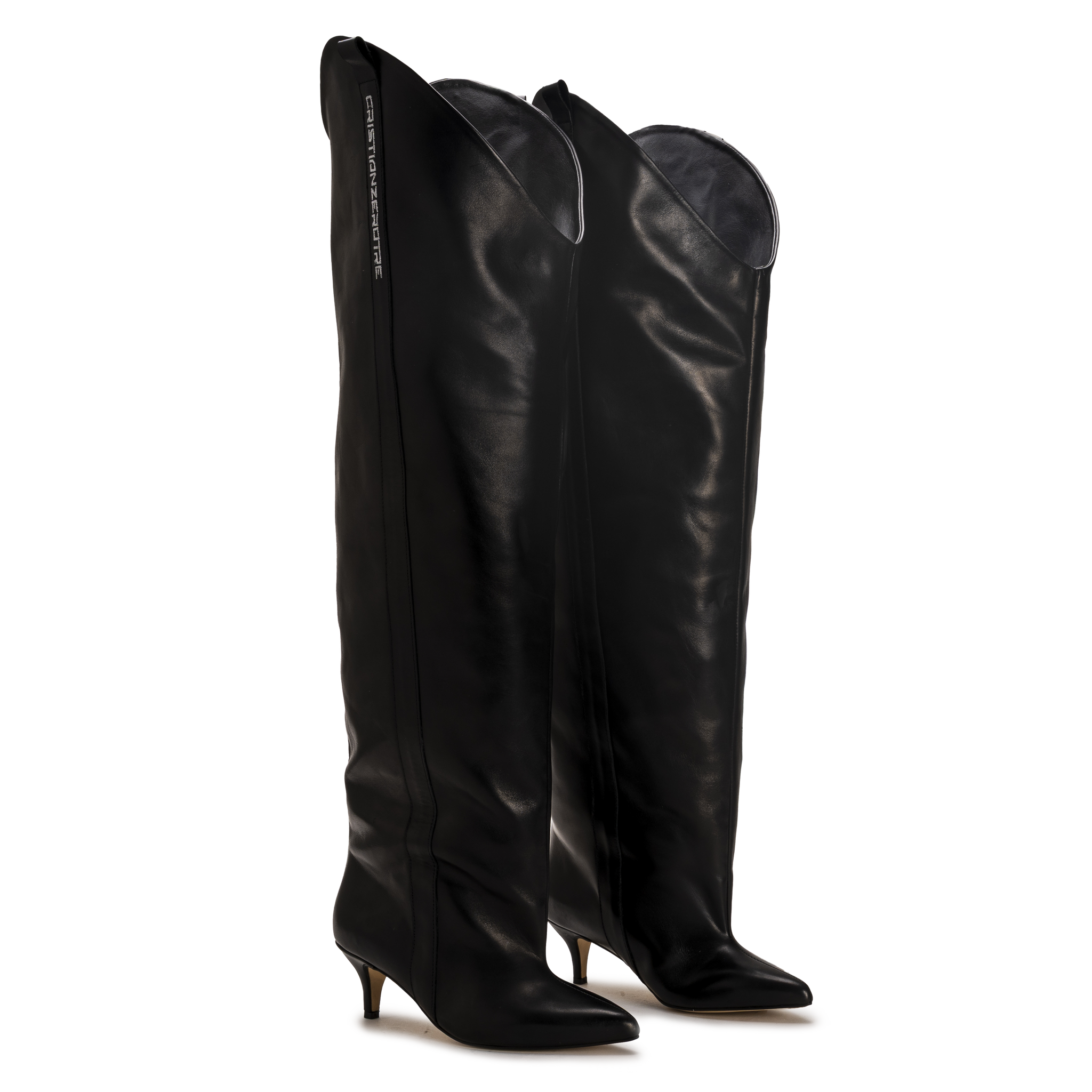 Fabriqué en cuir noir de première qualité et doté de l'emblématique CRISTIANZEROTRE image de marque verticale, elle est conçue pour se démarquer — sans effort.