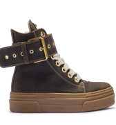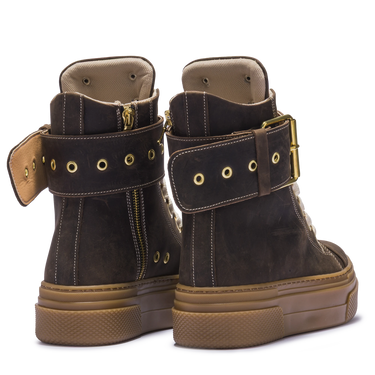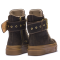 上質なブラックスエードを使用し、クラシックでありながらモダンな雰囲気を醸し出すこのシューズは、カジュアルにもセミカジュアルにもぴったりです。太めのシューレースとメタルアイレットが耐久性を高め、サイドジッパーが利便性を高め、時代を超えたデザインとなっています。