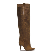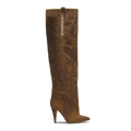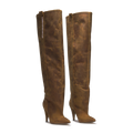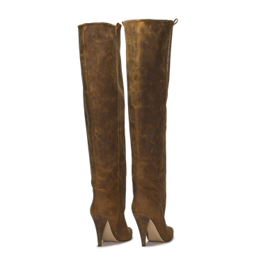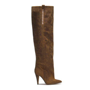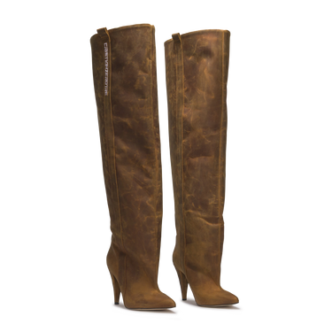 The STORM – Vintage Brown Distressed Leather Over-The-Knee Boots express bold individuality through their aged finish and sculptural silhouette. Handcrafted in Italy from distressed brown leather, this over-the-knee design rises on a 10 cm heel, merging heritage inspiration with contemporary attitude. The vertical CR03 logo detail completes a look made to stand out.