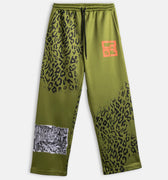 The Creative Safari Pants feature an all-over animalier print, fluorescent CR03 logo, and a black-and-white photo patch.