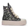 • Silver metallic eyelets all over