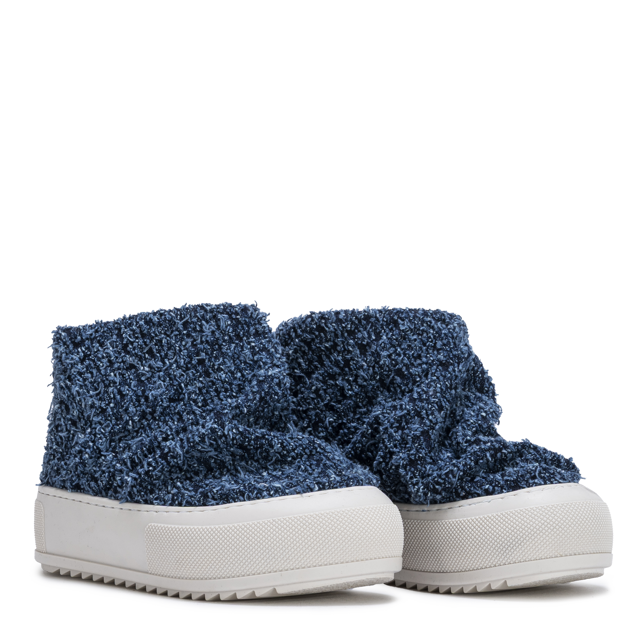 The plush surface creates a tactile, cloud-like effect, while the structured platform sole adds balance and stability. The relaxed upper silhouette enhances the feeling of softness without compromising presence.