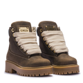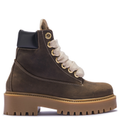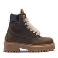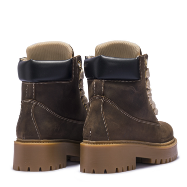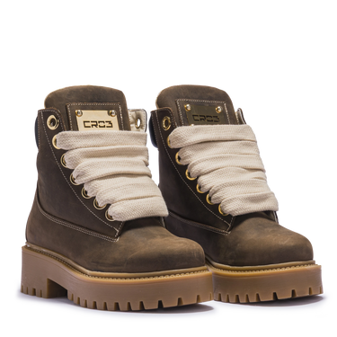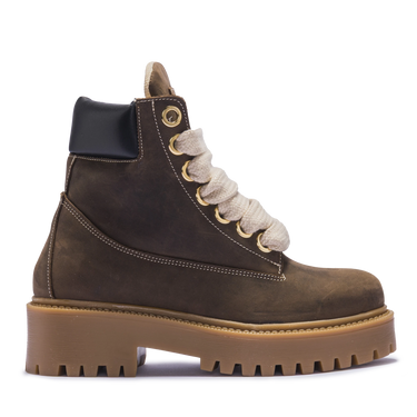 The STARBOOT – Dark Brown Nubuck blends rugged charm and street luxury. The deep brown nubuck upper meets oversized cream laces and gold details, creating a powerful yet refined contrast. With its chunky rubber sole and hand-finished construction, it’s designed for those who move with confidence — from city streets to wild horizons.